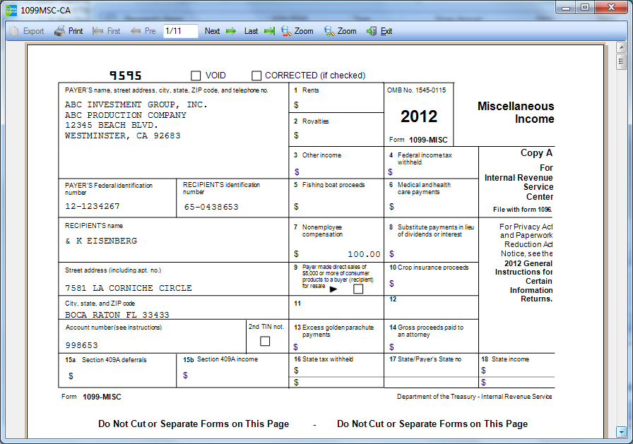 Click 8. Form 1099 - MISC