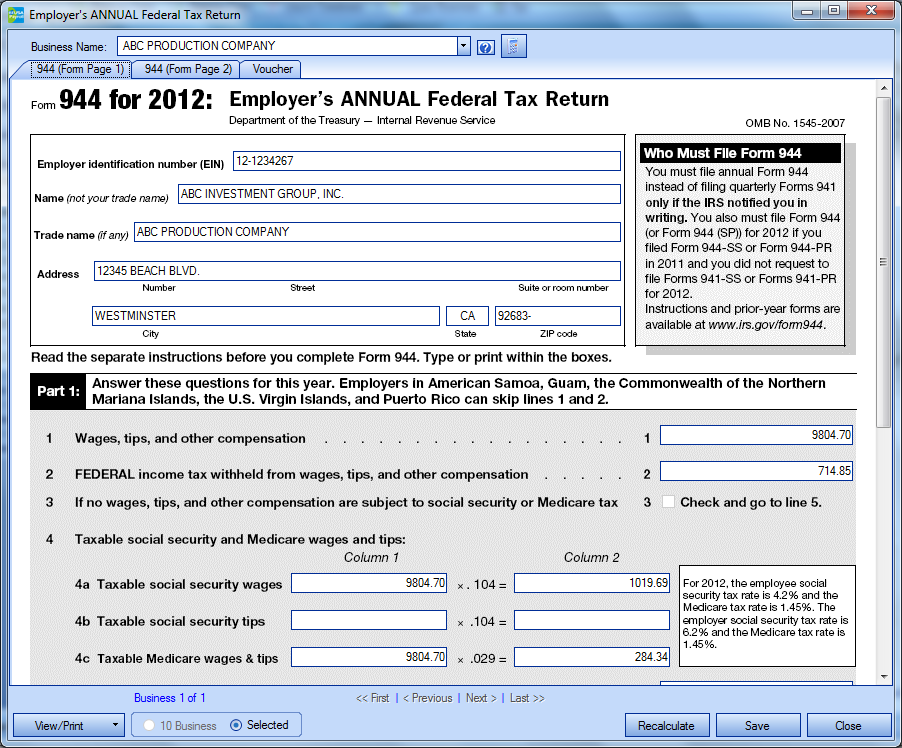 To save time, you can use Batch Print 944 from Main Screen to view and print 10 business at the same time.