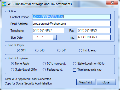 Form W-3 is ready for delivery and mail to IRS.