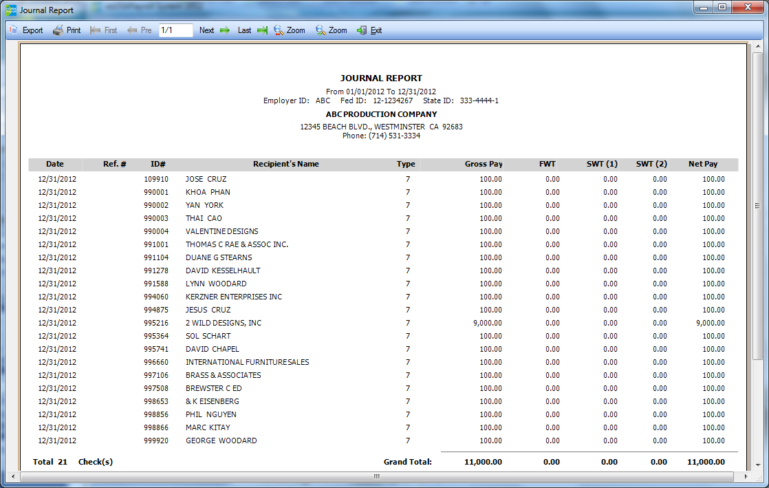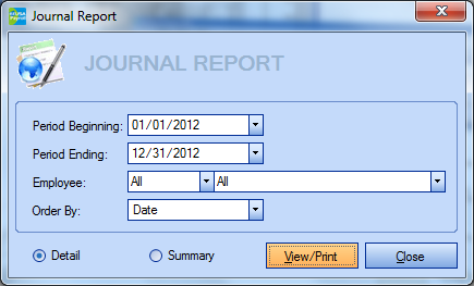 Select Order By to print order by Date / Check No / ID No / Type / Employee ID / First Name / Last Name.