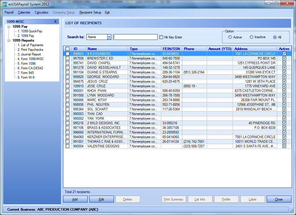 To delete one or more employees, check mark one or more employee(s) then click Delete, also check mark the column header on the grid if you want to delete all.