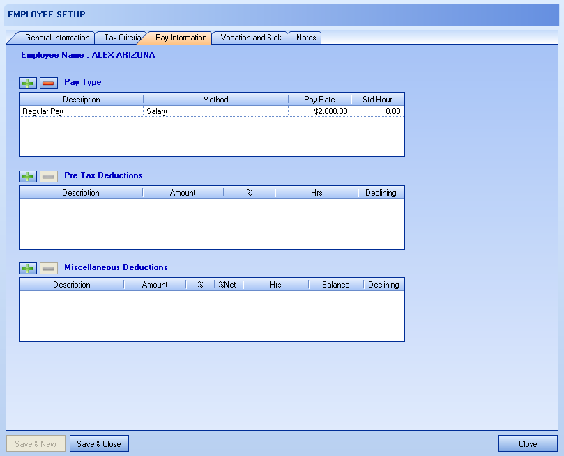 - Description:Double click and select the default pretax deduction to be used for this employee from the drop-down menu.