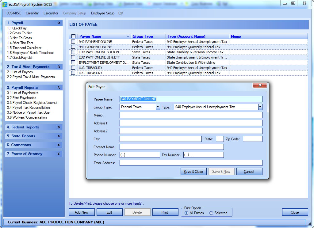 To delete/print, check mark one or more Payee(s), click Delete/Print.