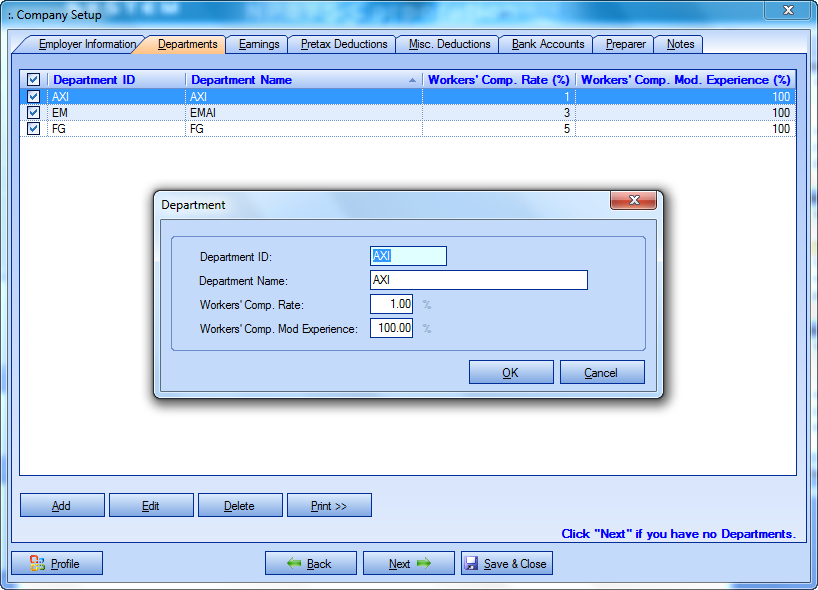 Workers' Comp. Rate / Workers' Comp. Mod Experience: Default from Tax ID & Rate Previous Tab.