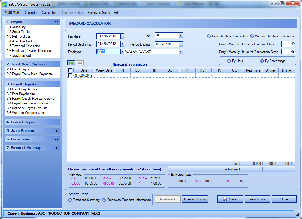 TIME CARD CALCULATOR